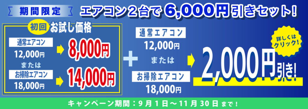 エアコンクリーニング初回は4000円引きです!(ウィルス対策に必須!)